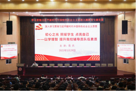 易兵以《初心之光照耀学生点亮自己——以学增智提升我校辅导员队伍素质》为题,围绕“初心之光”“照耀学生”“点亮自己”三个方面内容,系统阐释了高校辅导员制度的建设与完善历程、高校辅导员的职能职责与使命任务、高校辅导员的职业发展与价值引领。
