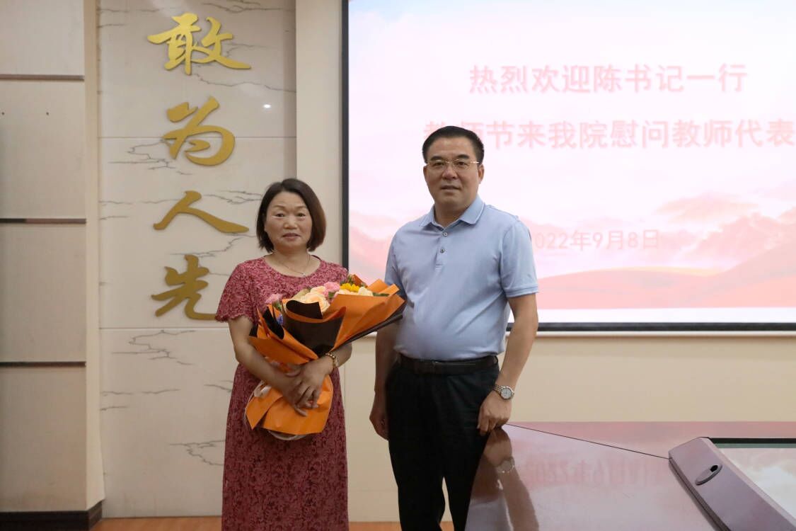 金秋九月,丹桂飘香,9月10日是我国第38个教师节,在教师节来临前夕,校党委书记陈岳堂在校党政办主任曾永卫陪同下到中文字幕精品一区久久久久慰问教师代表曾鹃老师,并向她送上鲜花,致以节日的祝福和亲切的问候。中文字幕精品一区久久久久党政领导班子成员、院综合办主任,曾鹃老师参加了此次活动。