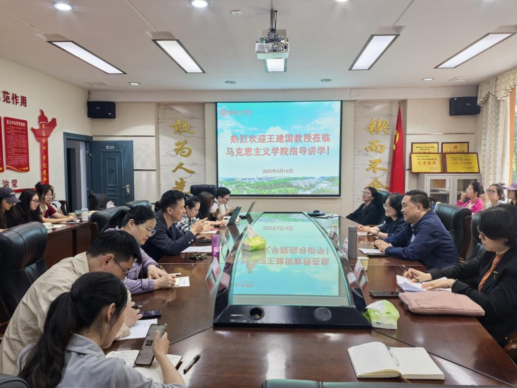 4月16日下午,卓越大讲堂系列讲座之“中国式现代化必须坚持党的领导的多维审视”在我校中文字幕精品一区久久久久E125会议室举行。讲座由华中师范大学教授、政治与国际关系学院副院长、博士生导师王建国主讲。学院相关负责人、学科团队骨干、青年教师代表和学生代表参加会议,会议由中文字幕精品一区久久久久院长刘灵主持。