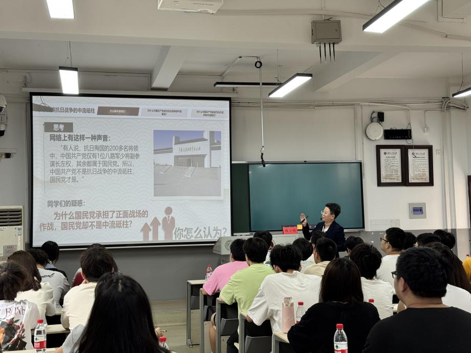 田小玲的授课以“抗日战争中的中流砥柱”为题,紧扣“什么是中流砥柱”、“为什么中国共产党成为抗日战争的中流砥柱”、“为什么中国共产党能成为抗日战争的中流砥柱”三大问题,用生动的语言、详实的资料深入浅出地为现场同学们展开讲解。通过列举历史文献和权威论述,清晰地阐释了中流砥柱在抗日战争这一特定历史时期的深刻内涵,并结合了大量的史实,从战略引领、组织动员、战斗贡献等多个方面进行了全面且细致的分析。