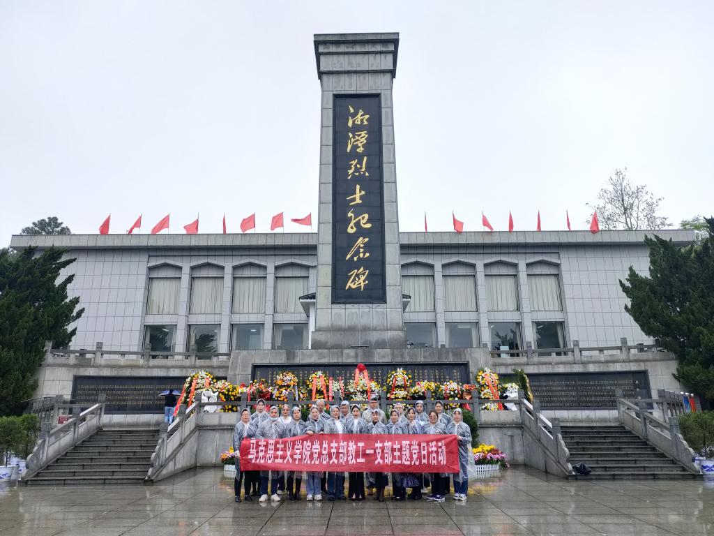 清明时节,阴雨绵绵。10时,公祭活动在庄严的国歌中开始,烈士陵园纪念碑广场上庄严肃穆。少先队员献唱《我们是共产主义接班人》,湘潭市人民政府向烈士敬献花篮,湖南科技大学“薪火相传宣讲团”成员诵读烈士遗书。铭记历史祭英魂,革命烈士不怕牺牲、敢叫日月换新天的壮志豪情永远激励着我们前行。随后,支部成员向烈士默哀致敬,并绕纪念碑一周,向烈士献花,瞻仰纪念碑,表达哀思与缅怀。