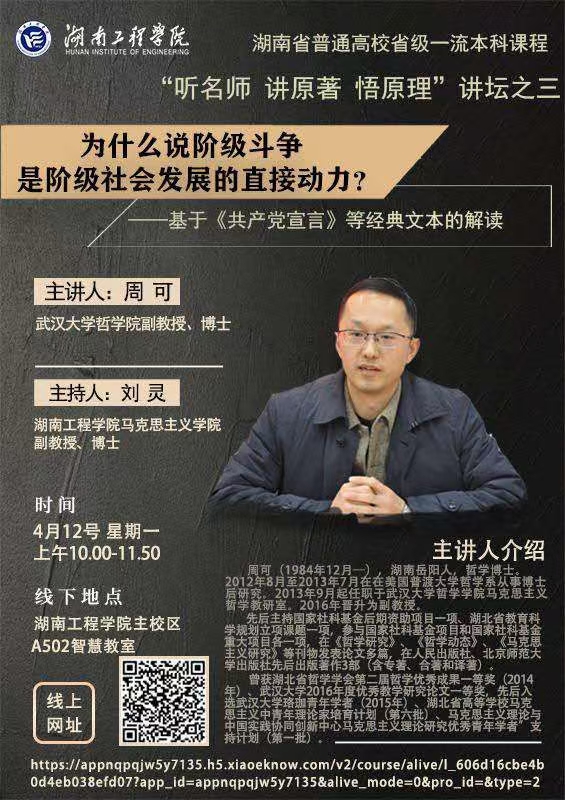 “听名师 讲原著 悟原理”讲坛之三 ---- 周可副教授主讲