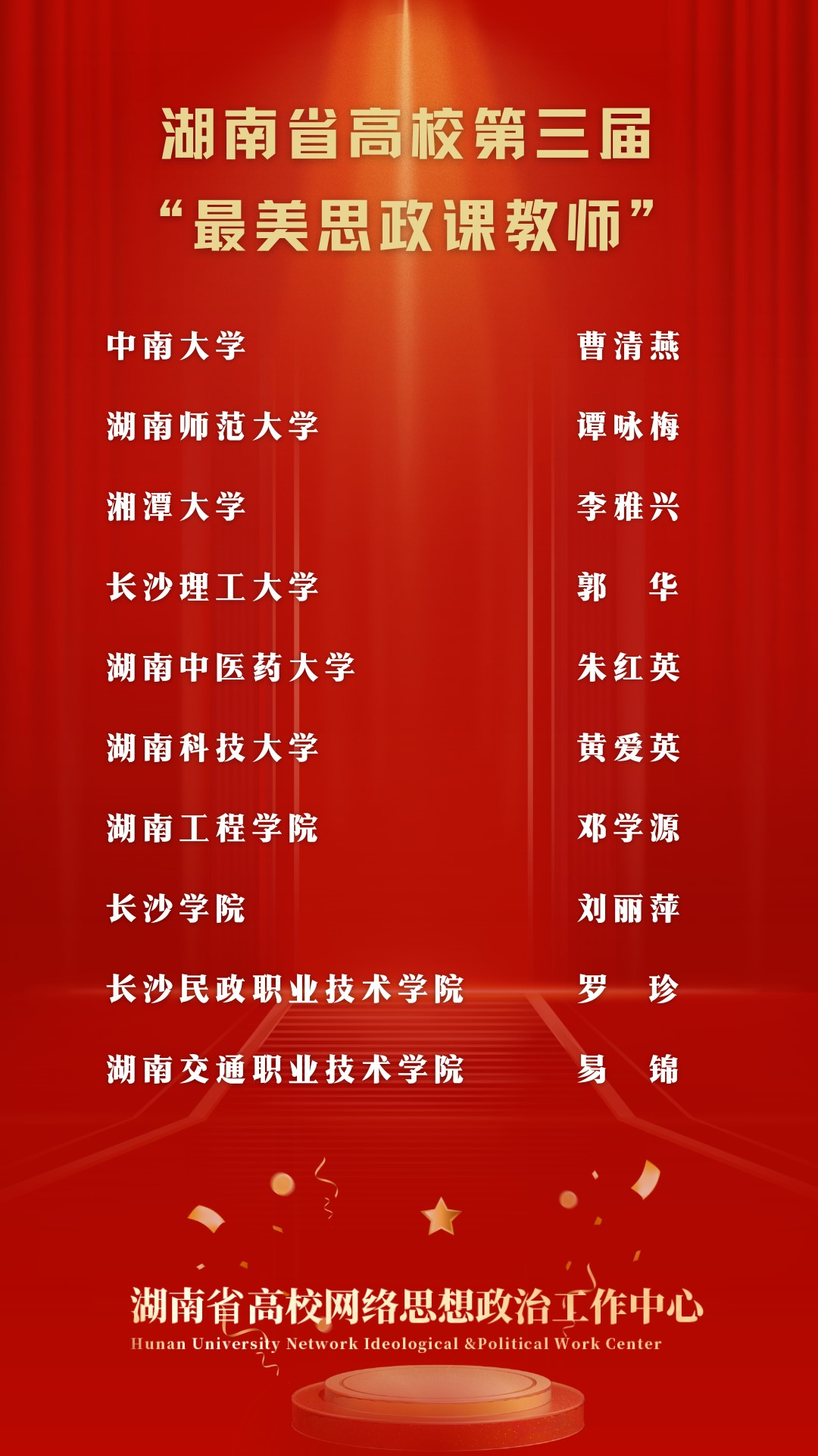 立德树人,培根铸魂。以人格魅力呵护学生心灵,以学术造诣开启学生智慧,用坚守和奉献展现高尚师德与责任担当,为党育人,为国育才,这就是湖南省高校第三届“最美思政课教师”。 他们,最美!快来为你最喜欢的思政课教师打call吧!