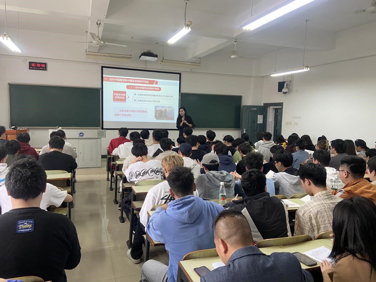 4月10日下午,概论教研室在主校区C405教室举行教学公开课活动,蒋卓娅老师以《新民主主义革命的总路线》为题进行授课。院长邓学源、副院长汤菊平以及教研室全体老师参加活动。