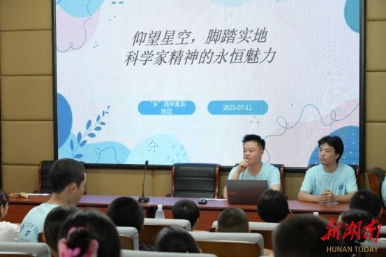在“科学家精神宣讲”主题课堂上,湖南工程学院思政研究基地刘家骅及实践团成员陈锃等以钱学森、袁隆平等科学家的事迹为例,通过情景剧、问答互动等形式,生动诠释“爱国、创新、求实、奉献”的科学家精神。孩子们在便签上写下感悟:“我要像袁爷爷一样,用知识让家乡变得更美好!”